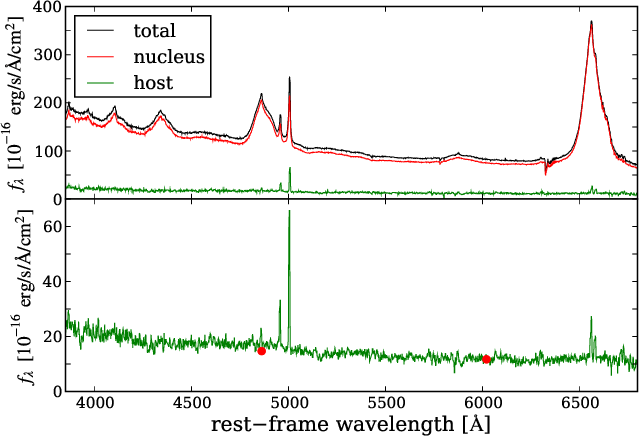 package (Krist 1995), because no sufficiently bright star was covered by the HST observation. We used GALFIT (Peng et al. 2002) to decompose the host and QSO contributions assuming a de Vaucouleurs light profile (de Vaucouleurs 1948) for the host plus a point source for the nucleus. The effective radius and ellipticity of our best-fitting model was