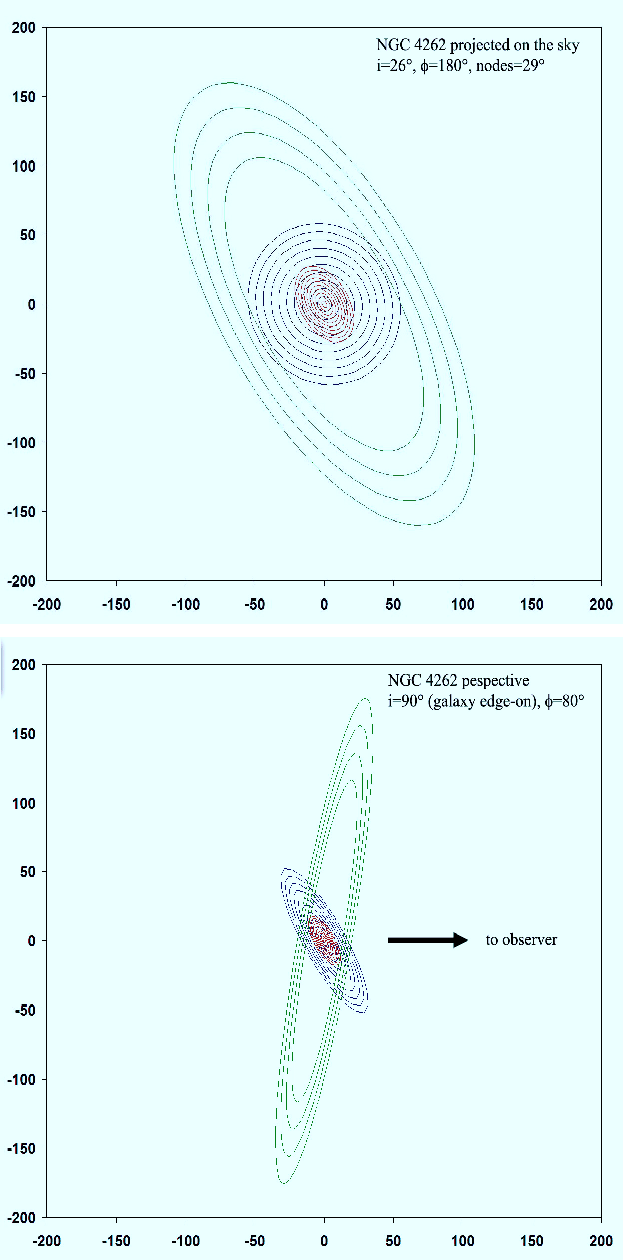 NGC 4262 have the same extent and projected spatial orientation. Their