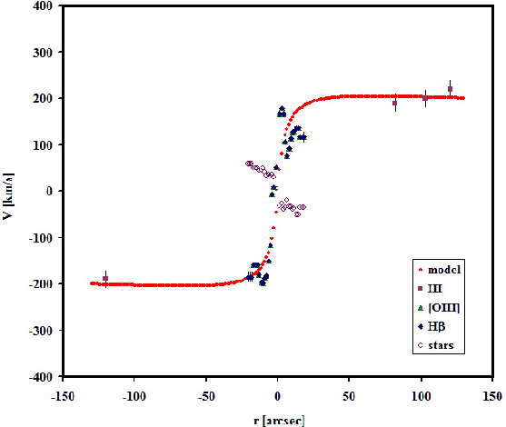 Toward our goal, we want (i) to show that both star-forming and HI rings surrounding this SB0 galaxy (see Fig. 2) share the same radial distance from the galaxy center and spatial orientation; and (ii) to model the kinematics of the ring(s) and of the galaxy body taking advantage of the existing innermost ionized gas velocity field (Sarzi et al. 2006) and the outer neutral hydrogen rotation curve (Krumm et al. 1985).