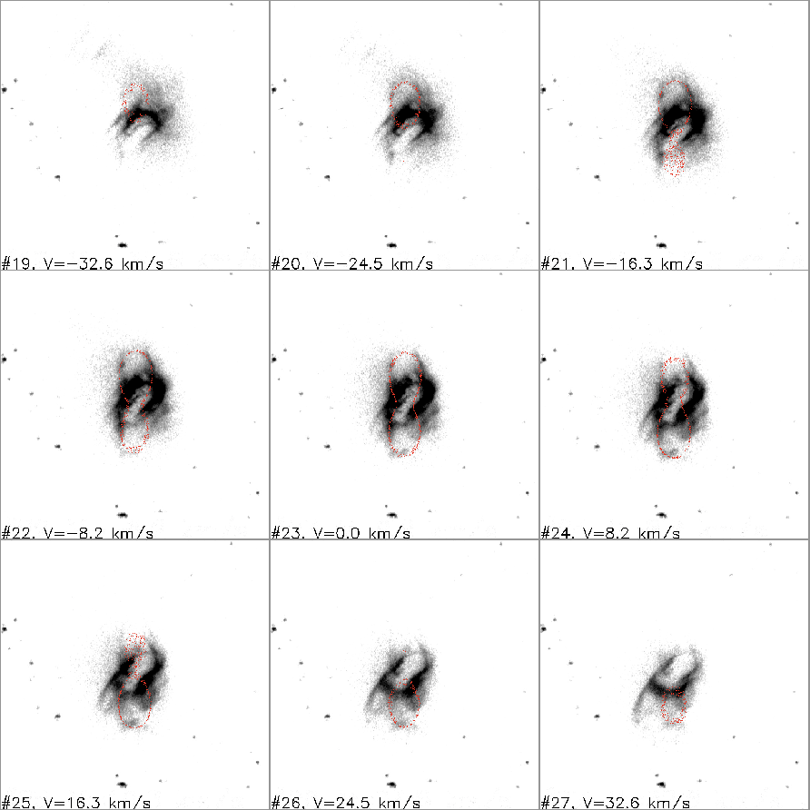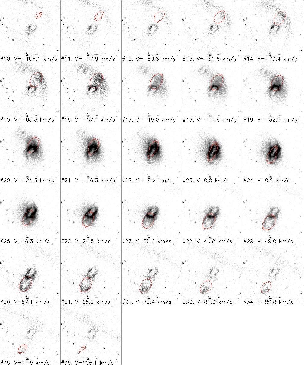 or 392 km s-1 split into 48 channels, thus leading to a velocity step of 8.16 km s-1 per channel. The total exposure time of the scanning was 1.9 h, and the seeing 0