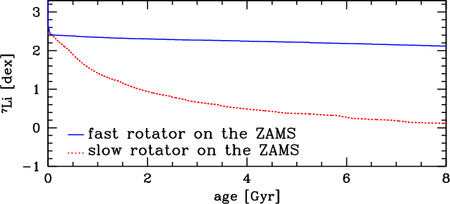 Figure 3: Same as Fig. 2 for the surface abundance of lithium. |