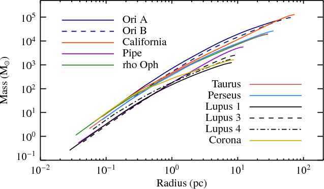 Larson (1981) first noted a scaling relation between masses and sizes