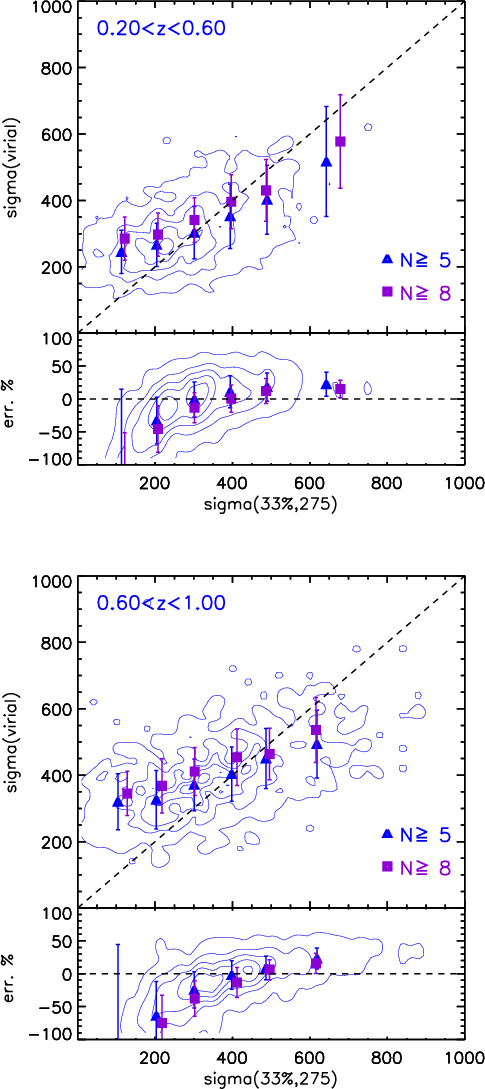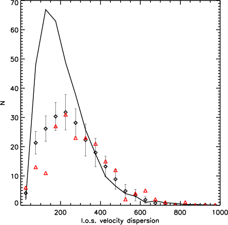 redshifts trace the line-of-sight velocity dispersion of the underlying