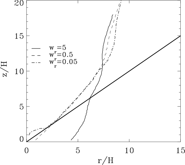 measured in units of the scale height, and thus the diameter