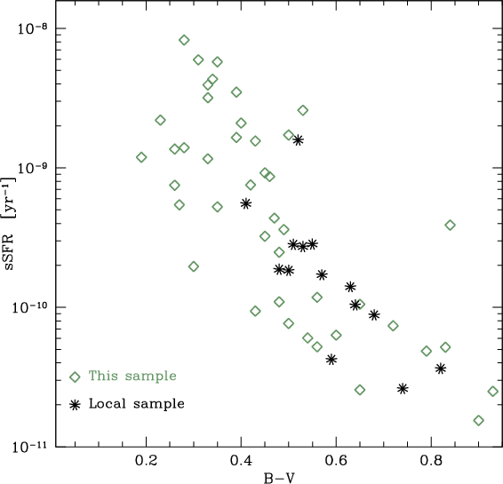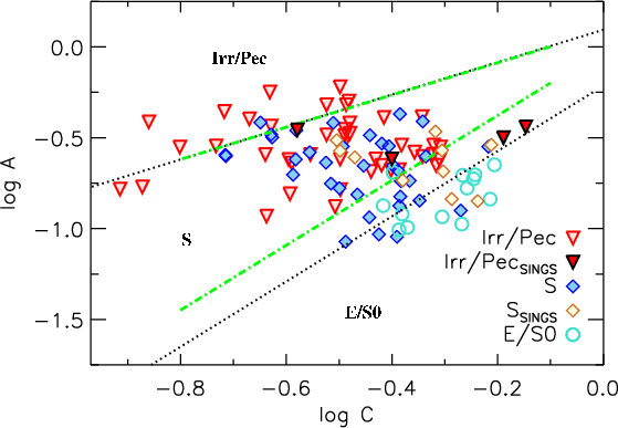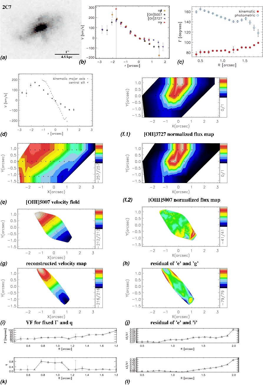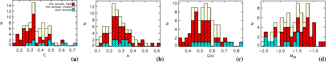 the disk scale length, rest-frame colors, asymmetry, concentration,