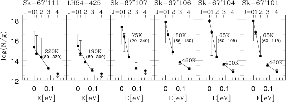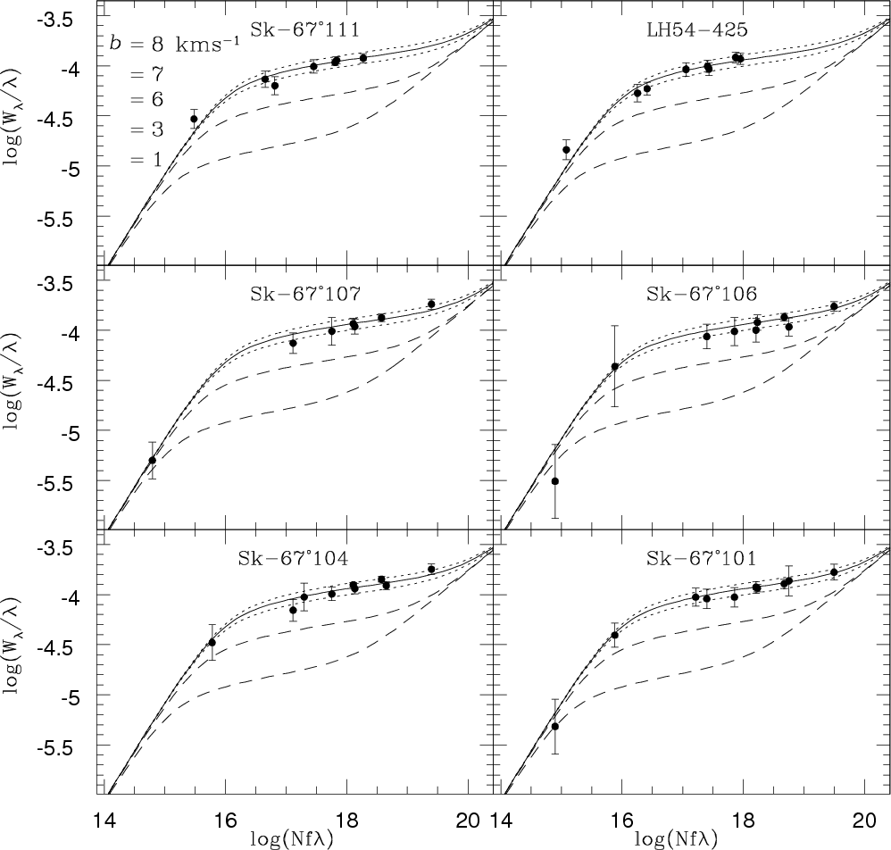 of six Large Magellanic Cloud (LMC) stars (Sk -67