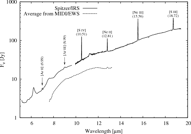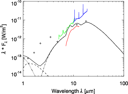 (SED) is constrained by the MIDI N-band spectrum and by data
