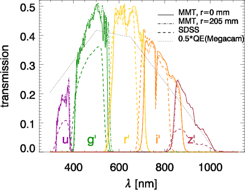 - Overview: http://www.cfa.harvard.edu/mmti/megacam.html; filter data: http://www.cfa.harvard.edu/bmcleod/Megacam/Filters/.