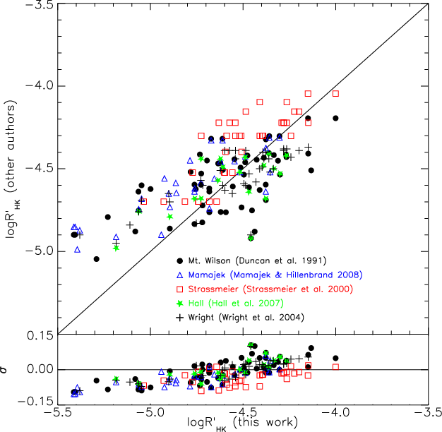 When searching for exoplanets using the radial velocity (RV) technique, the possibility of jitter caused by chromospheric activity must be considered. When modeling stellar activity, Saar & Donahue (1997) were the first to quantitatively estimate the impact of stellar spots on the RV curve and showed that they could produce peak-to-peak RV amplitudes of up to a few hundred m s-1, depending on spot size and the rotational velocity of the star. Subsequent studies (Saar et al. 2003; Santos et al. 2000; Desort et al. 2007; Paulson et al. 2004) obtained similar results. Several attempts to reduce RV noise levels by using an activity-based correction have been made (Saar et al. 2003; Saar & Donahue 1997; Saar & Fischer 2000; Santos et al. 2000; Wright 2005; Saar et al. 1998). To use these corrections and to test and calibrate the relations, high precision, homogeneous chromospheric activity measurements are needed.