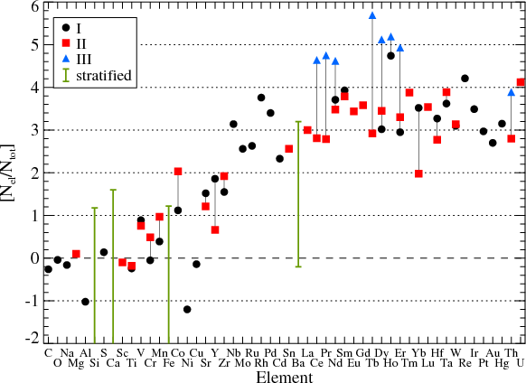 4 dex (compared to the Sun) for elements heavier than Ni and