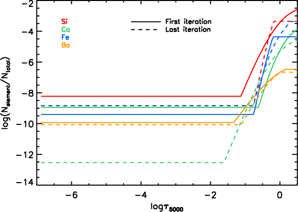 Table 3: List of Si, Ca, Fe, and Ba spectral lines used for reconstruction of chemical stratification.