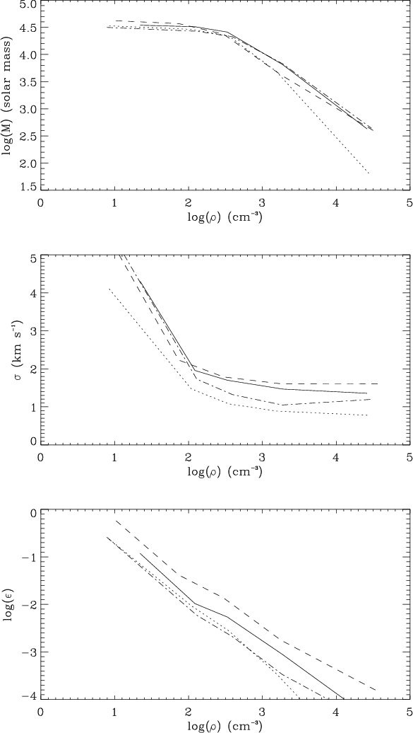 Figure 7: Internal velocity dispersion of clumps produced in colliding flows simulations. |