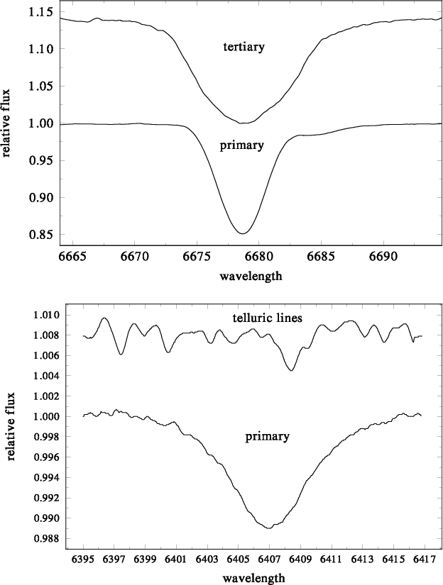 similarly hot tertiary, while the lines of a cooler B-type secondary