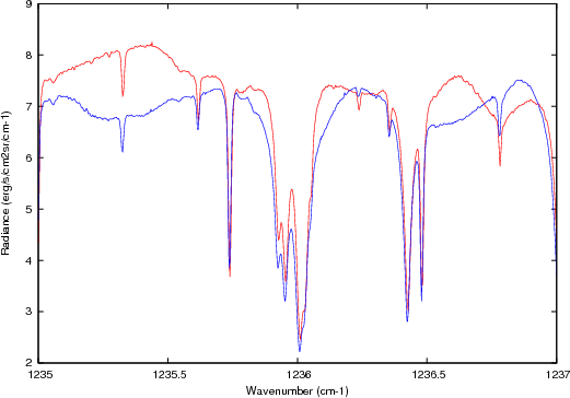 We then investigated if the puzzling aspect of the TEXES continuum map could be of instrumental origin. As illustrated in Fig. 1, the TEXES continuum is affected by wiggles, most probably due to Fabry-Perot finging in the circular variable filter. These effects may be about 10-20 percent (Fig. 1), which is still not sufficient to explain the discrepancies in the observed and predicted brightness temperatures. A more significant effect is probably the poor spatial resolution of our data. As the slit width is three times the pixel size, the observed continuum value at the limb position is reduced by a factor 3 as compared to the true continuum value. As a result, the high temperature contrast expected near the evening limb is significantly reduced. As mentioned above, the blurring effect is further enhanced with the poor seeing. This convolution effect, however, cannot explain the large difference between the observed and predicted surface temperatures, so this remains an open question. In any case, we conclude that the continuum map may not be a reliable indicator of the surface temperature. In contrast, the CO2 and H2O line depths, and thus the water vapor map, are not affected by the uncertainty in the continuum level.