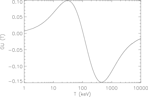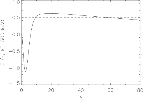 We convolve the spectral function g(x) over a Gaussian detector response centered at 217 GHz as it was done by Shimon & Rephaeli (2003). The signal at a frequency of 217 GHz from a low-temperature plasma which arises due to the convolution over a spectral response is shown in Fig. B.1 as a function of the FWHM of the Gaussian detector response.