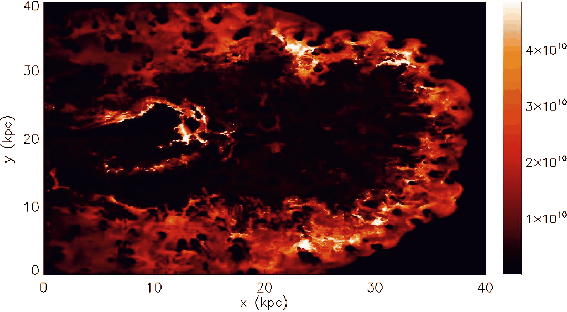 Figure 7: The simulation map of the gas temperature (in K) in the AGN cocoon. |