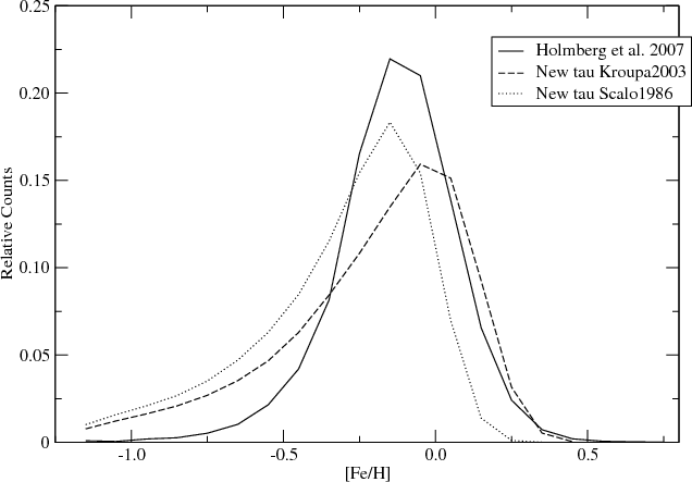 Figure 1 illustrates the predictions for the dwarf metallicity distribution in the solar neighbourhood (Scalo 1986, represented as a dotted line and Kroupa et al. 1993,