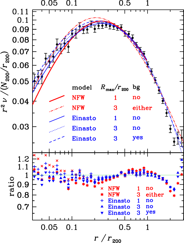 - We also experimented with free index Einasto models: we generally found that the best fit index was in the range 4.6 < m < 5.2.