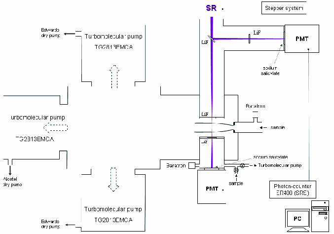 The absorption spectrum of a gaseous sample near 300 K was also measured with this end station. The tube