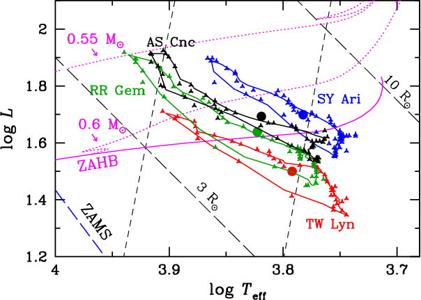 For four RR Lyrae (TW Lyn, RR Gem, AS