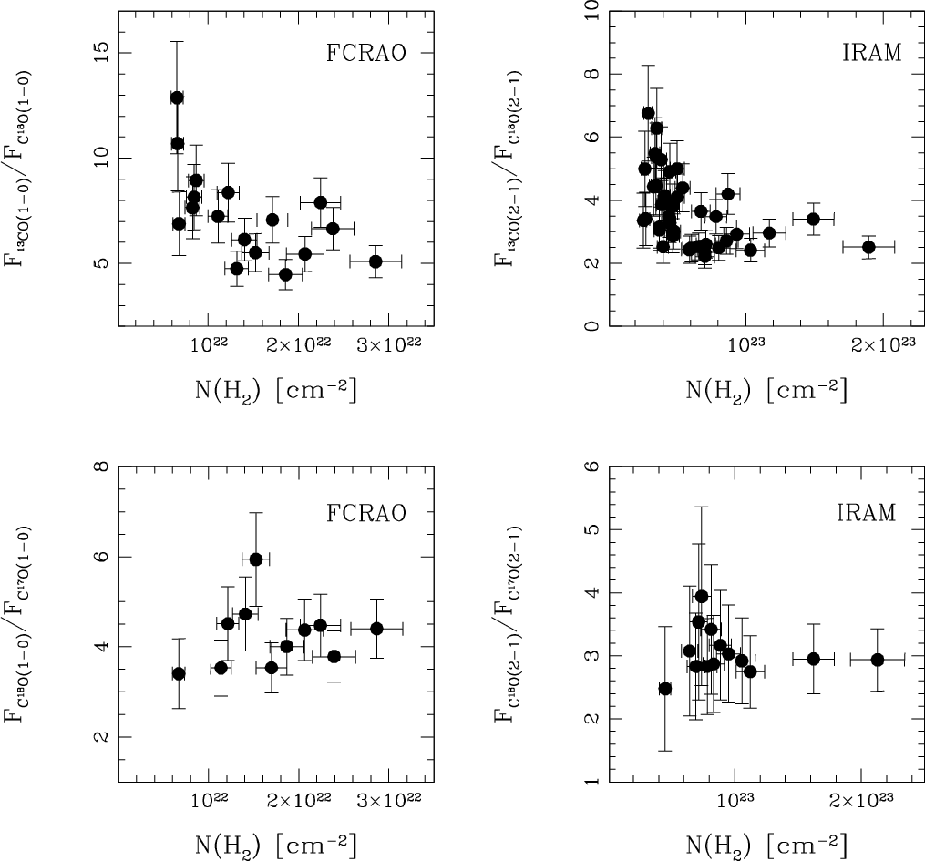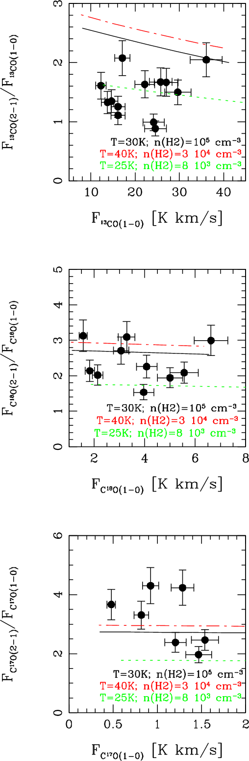Methods. We have mapped CO isotopologues in the J=1-0 transition using the FCRAO-14m telescope and the J=2-1 transition using the IRAM-30m telescope. We have also used APEX 870