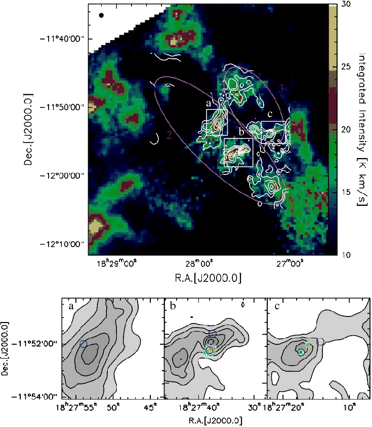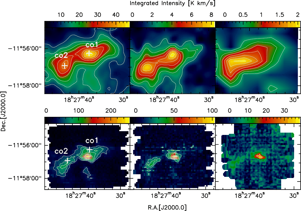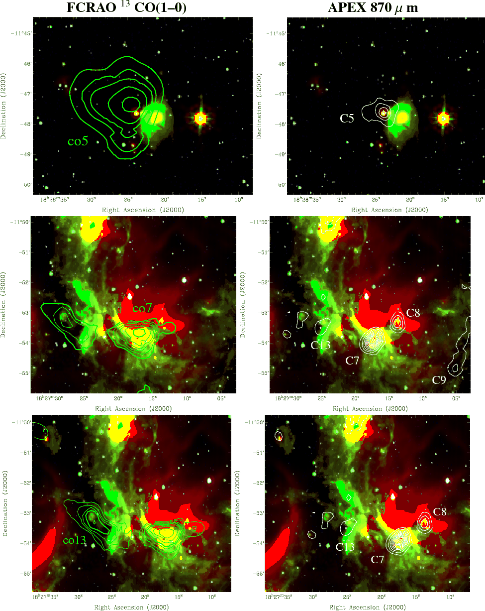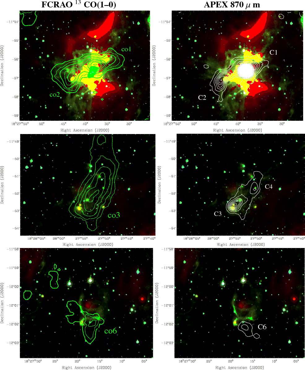 - Based on observations made with the 14 m FCRAO telescope, the Spitzer satellite, and the Atacama Pathfinder Experiment (APEX), ESO project: 181.C-0885. APEX is a collaboration between the Max-Planck-Institut fur Radioastronomie, the European Southern Observatory, and the Onsala Space Observatory.