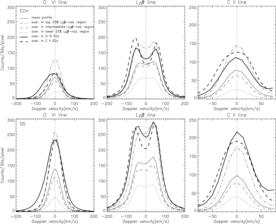 EEs, both in the coronal hole and in the quiet Sun. The average Ly