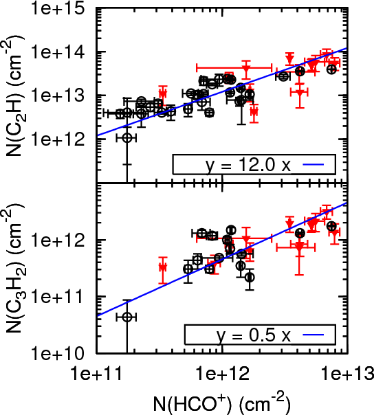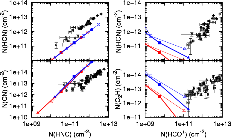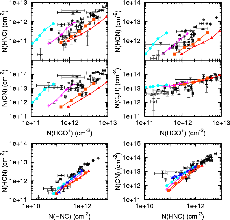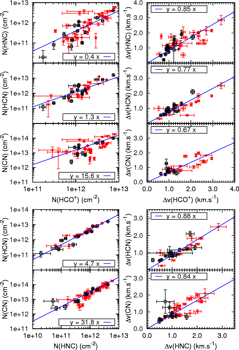 HCN, and HNC are linearly correlated with each other with mean ratios