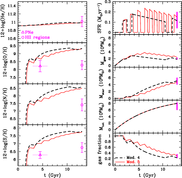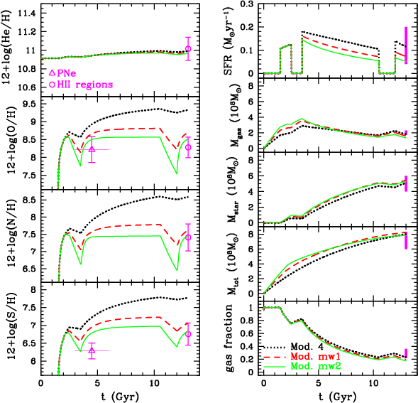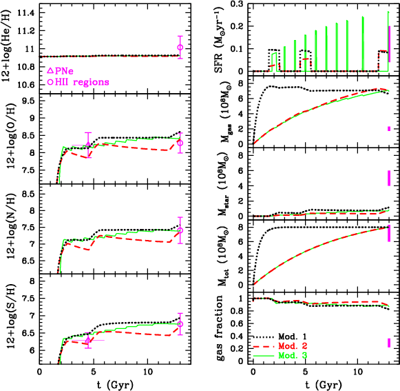 We describe the baryonic content, the SFR, and the chemical abundances of IC 10 in Sect. 2. The framework of the modelling is given in Sect. 3, whereas the results are presented in Sect. 4. Finally, Sect. 5 is devoted to the conclusions.