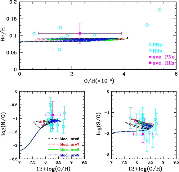 to predict the evolution of several chemical elements (He, O, N, S) and