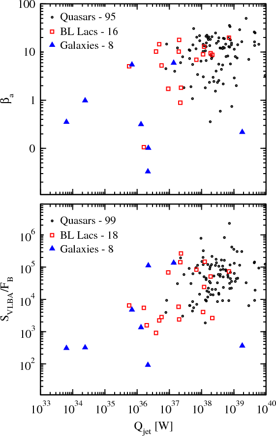 and the VLA (Very Large Array) radio core emission of the jet on scales