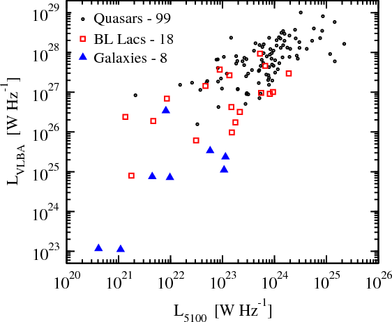 jet and the optical nuclear luminosity at 5100 Å supports the