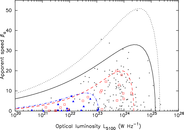 jet, and allows the peak values of the intrinsic optical luminosity of