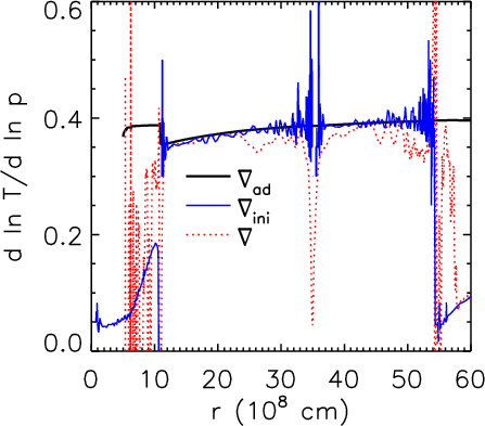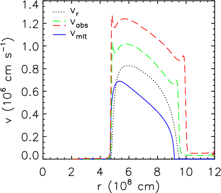 our hydrodynamic simulation and convection velocities of our 1D initial