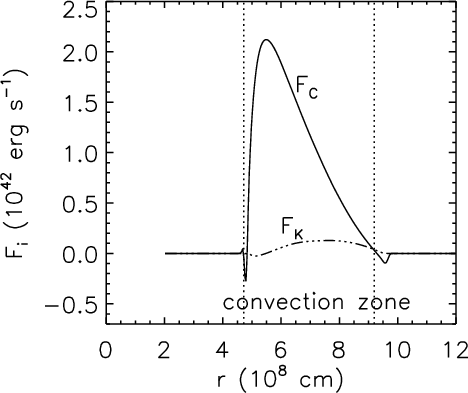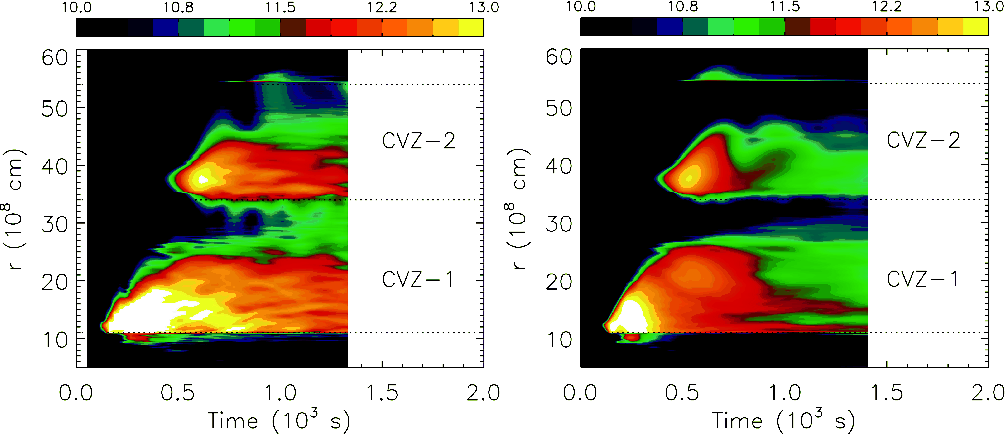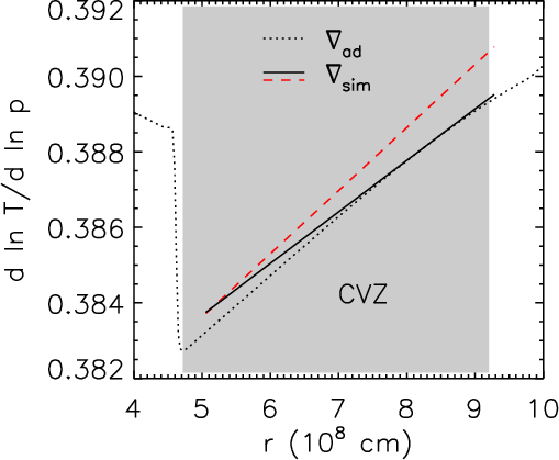 - The depth of the convection zone CVZ in our single flash model is approximately 2.3 pressure scale heights.