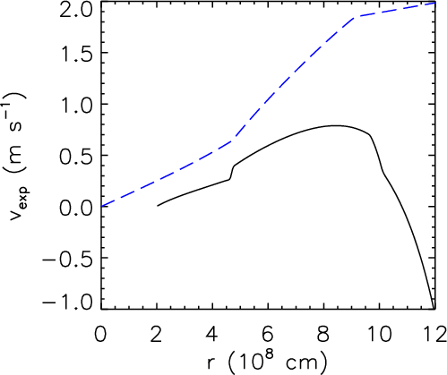 - 1D stellar evolutionary codes force hydrostatic equilibrium, so the actual expansion would have most likely been even stronger.