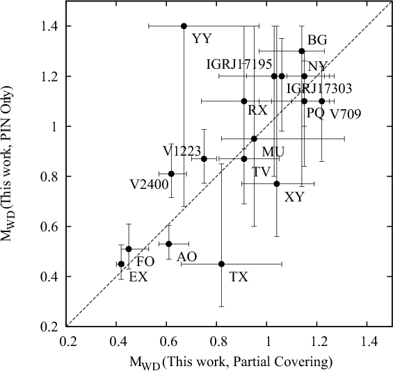 in many cases. The WD mass of a recently-found IP, IGR J17195-4100, was also estimated for the first time