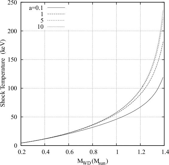 of individual spectra, the shock temperature and the WD mass were