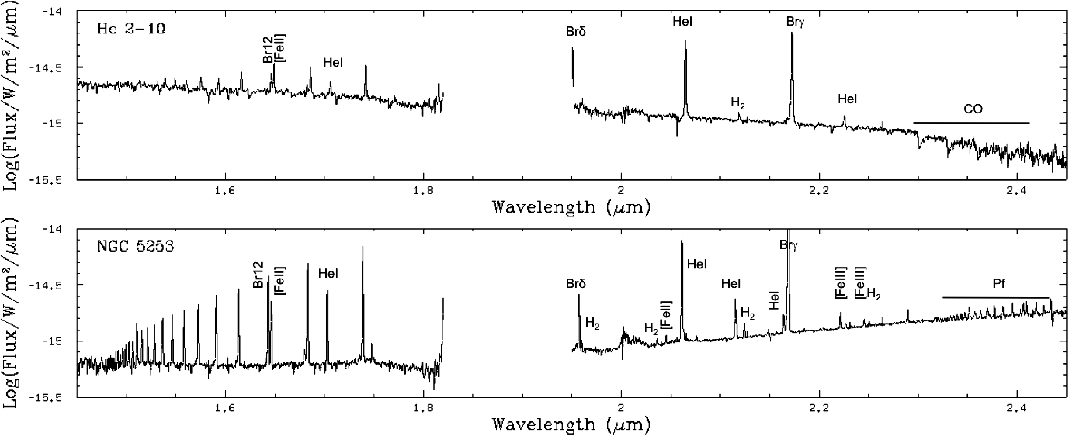 molecular hydrogen spectrum, [FeII] emission, and CO absorptions.
