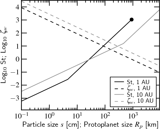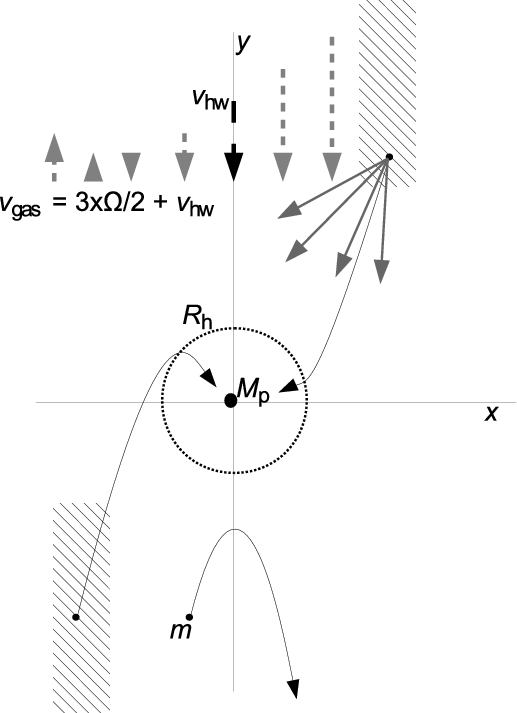 - a planetesimal or protoplanet - and small particles, e.g., dust,