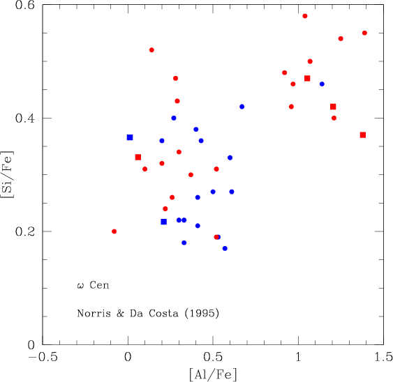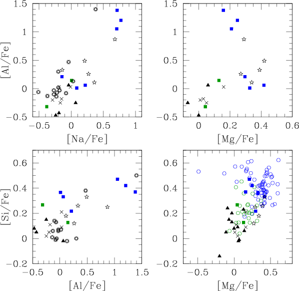 absent for the Sgr nucleus. The light elements (Mg, Al, Si)