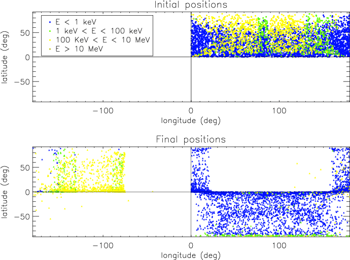 a broad range of latitudes. These form a trapped high-energy population, with particles bouncing in the fieldlines and