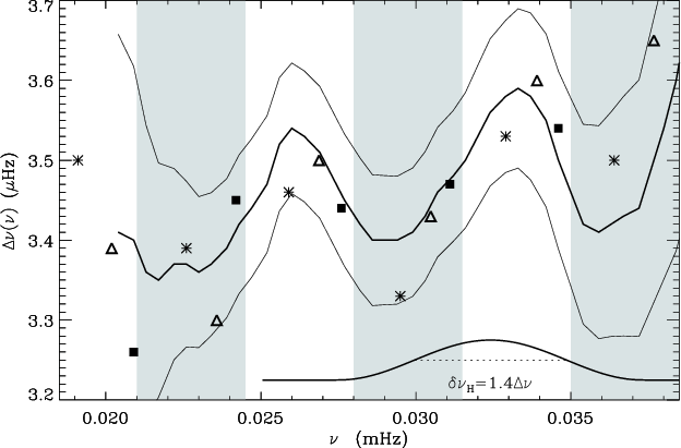 in Fig. 5) and in analytical approximations (Monteiro & Thompson 1998; Houdek & Gough 2007). Although current error bars are too large to draw a firm statement, the amplitude of the observed component computed with
