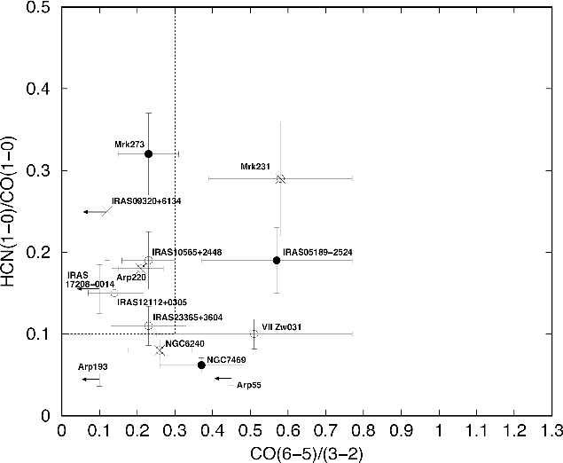 HCN(1-0)/CO(1-0) ratio (R>0.1).
