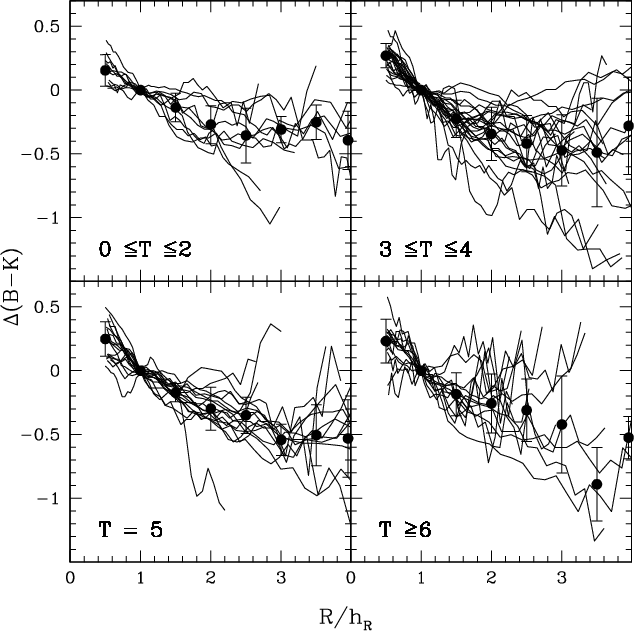 with radius (Bell & de Jong 2001), whose