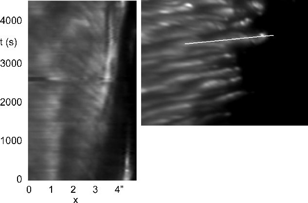 show outward propagating striations with inclination angles suggesting