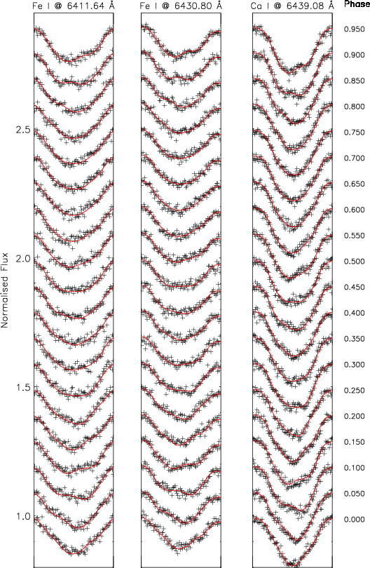 The successful results of testing the Occamian approach to Doppler imaging combined with the LSD technique applied to simulated data in Sect. 3 encouraged us to employ this new technique for the analysis of real data. We now apply LSD to observations which originally had a good S/N. There we can expect that the obtained temperature maps should be almost identical regardless of whether the Occamian approach is used with or without LSD.