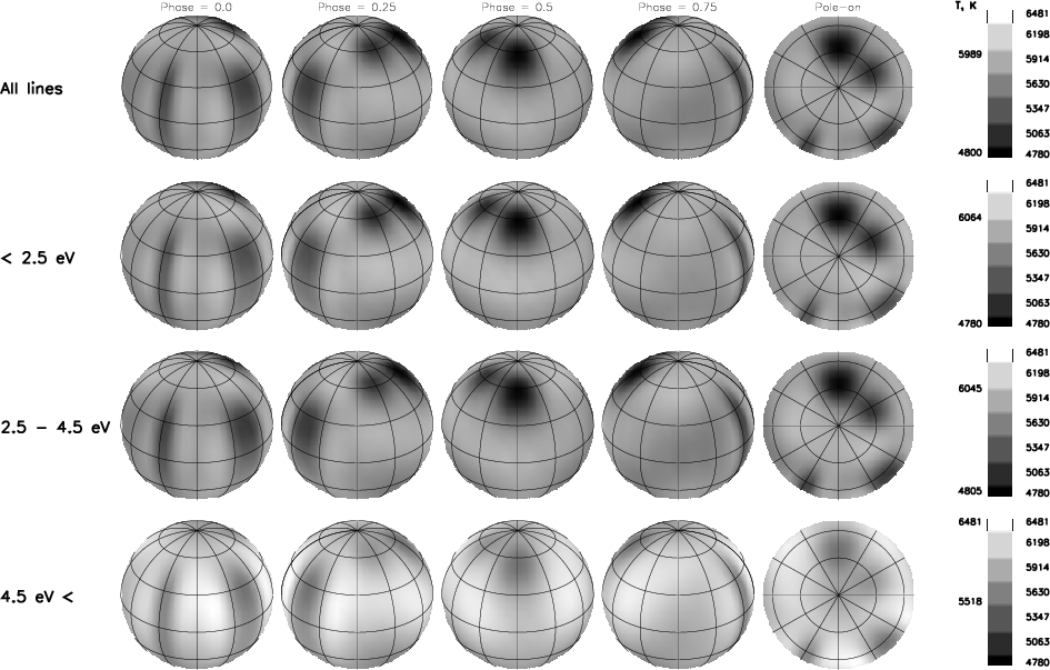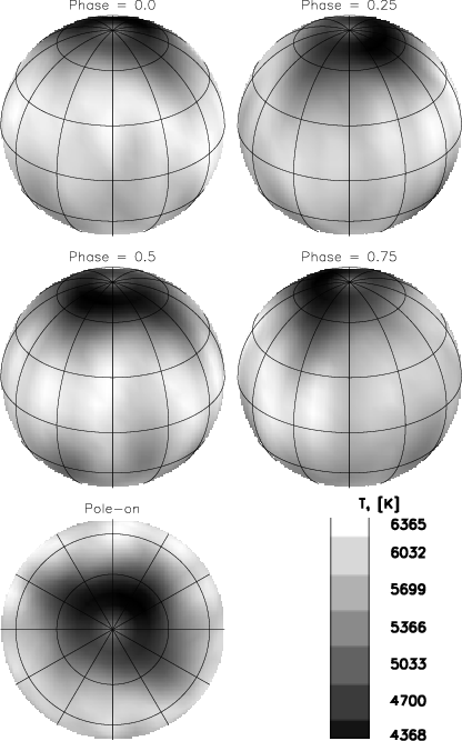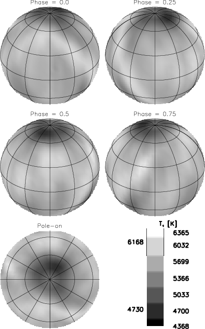 Figure 18: Surface temperature map of V889 Her obtained using the Occamian approach without LSD. Adapted from Järvinen et al. (2008). |