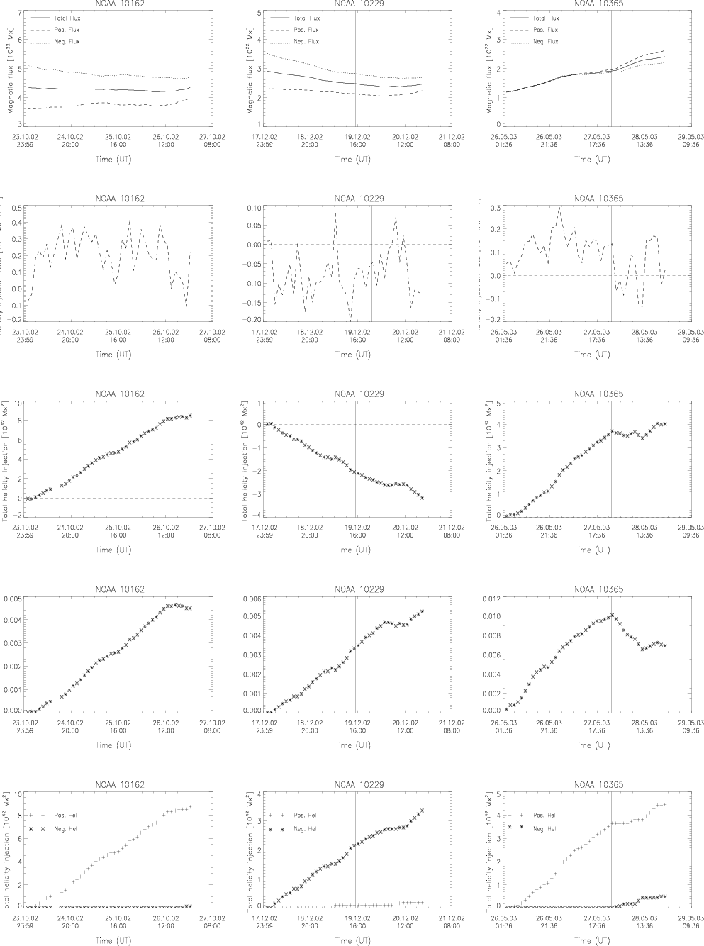 Figure A.2: Same as in Fig. 3 for ARs 10162, 10229 and 10365, belonging to Class II (impulsive CMEs). |