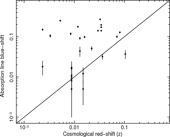 absorption. They are systematically blue-shifted, with a velocity